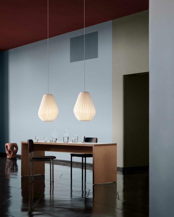 Die TR31 Pendelleuchte von Tom Rossau verbindet skandinavisches Design mit einer leichten, skulpturalen Formsprache und sorgt für ein besonders angenehmes Licht im Raum. Als hochwertige Designer-Pendelleuchte setzt sie einen stilvollen Akzent – ob als Hängeleuchte über dem Esstisch, über der Kücheninsel oder als wohnlicher Blickfang im Wohnzimmer.